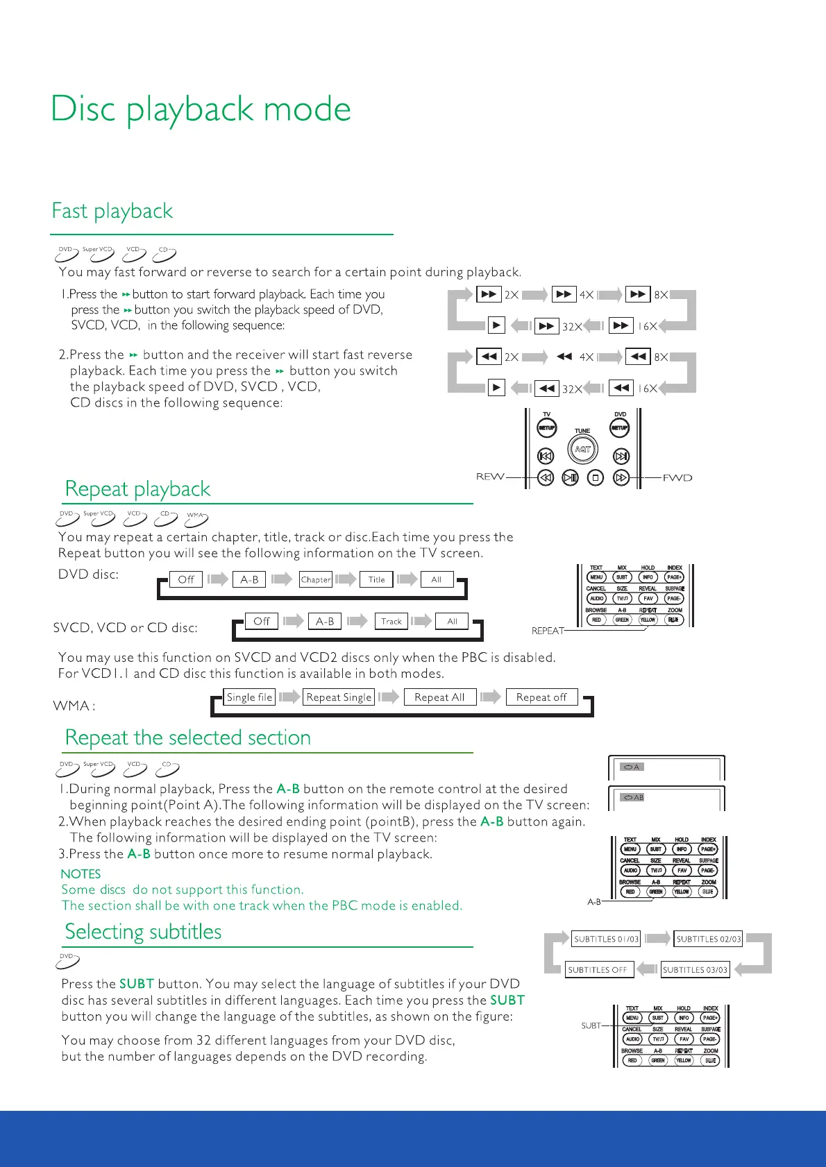 Avtex L219DRS-PRO - Disc Playback Controls; Fast Playback; Repeat Playback; Selecting Subtitles
