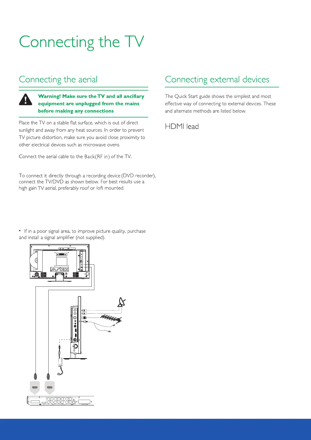 Connect satellite cable to the SAT1 socket for watching