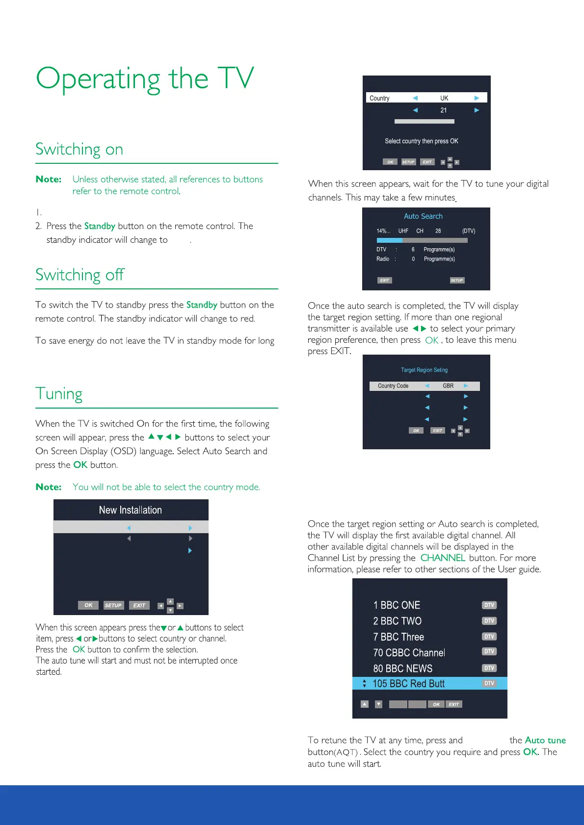 periods such as overnight. Switch the TV off using the Power