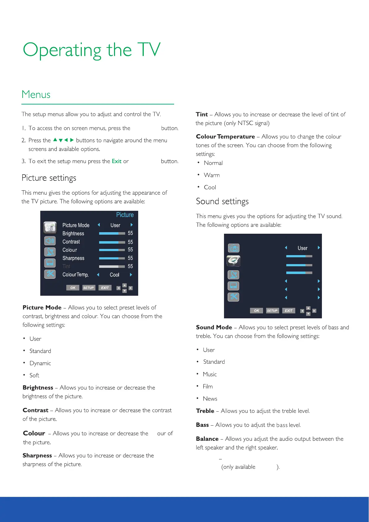 Avtex L249DRS-PRO - Menus; Picture Settings; Sound Settings