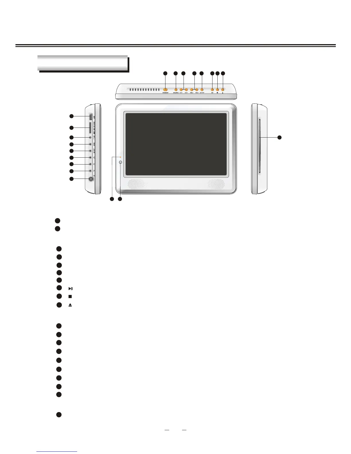 Indicator( )Indicator is red when in standby mode, green when working normally.