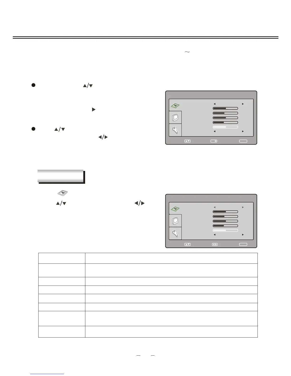 the item, and then press [ ] button to adjust