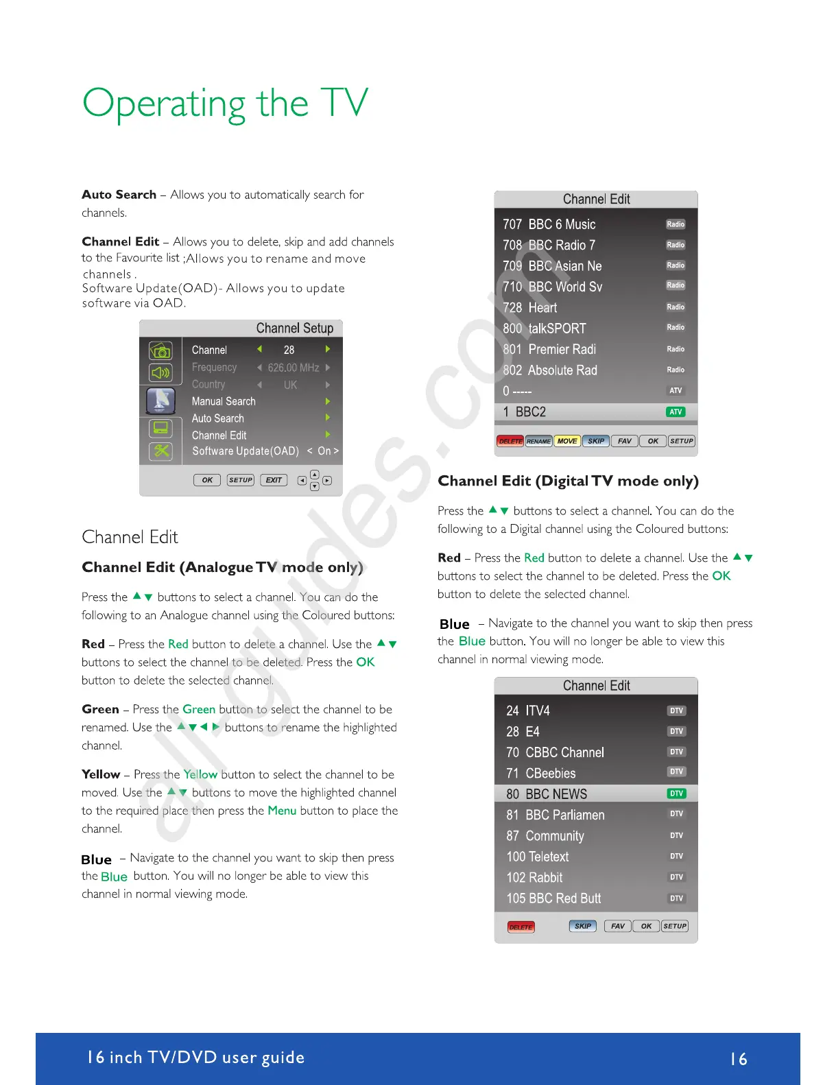 Avtex W164DRS - Operating Your TV: Channel List Management; Channel List Editing and Management