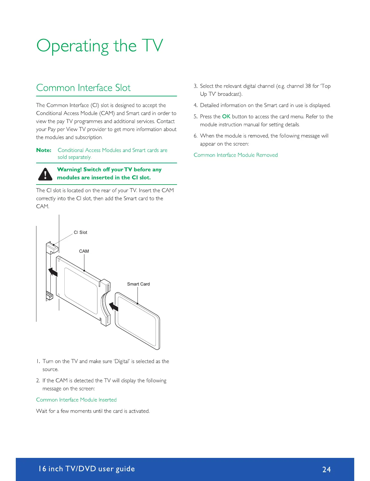Avtex W164DRS - Operating Your TV: Common Interface Module; Common Interface (CI) Module Usage