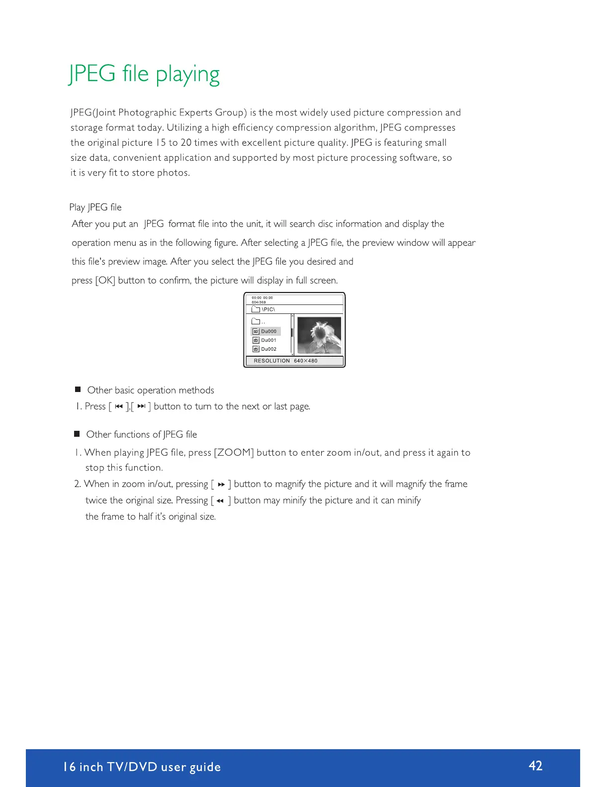Avtex W164DRS - JPEG File Viewing; Viewing JPEG Image Files