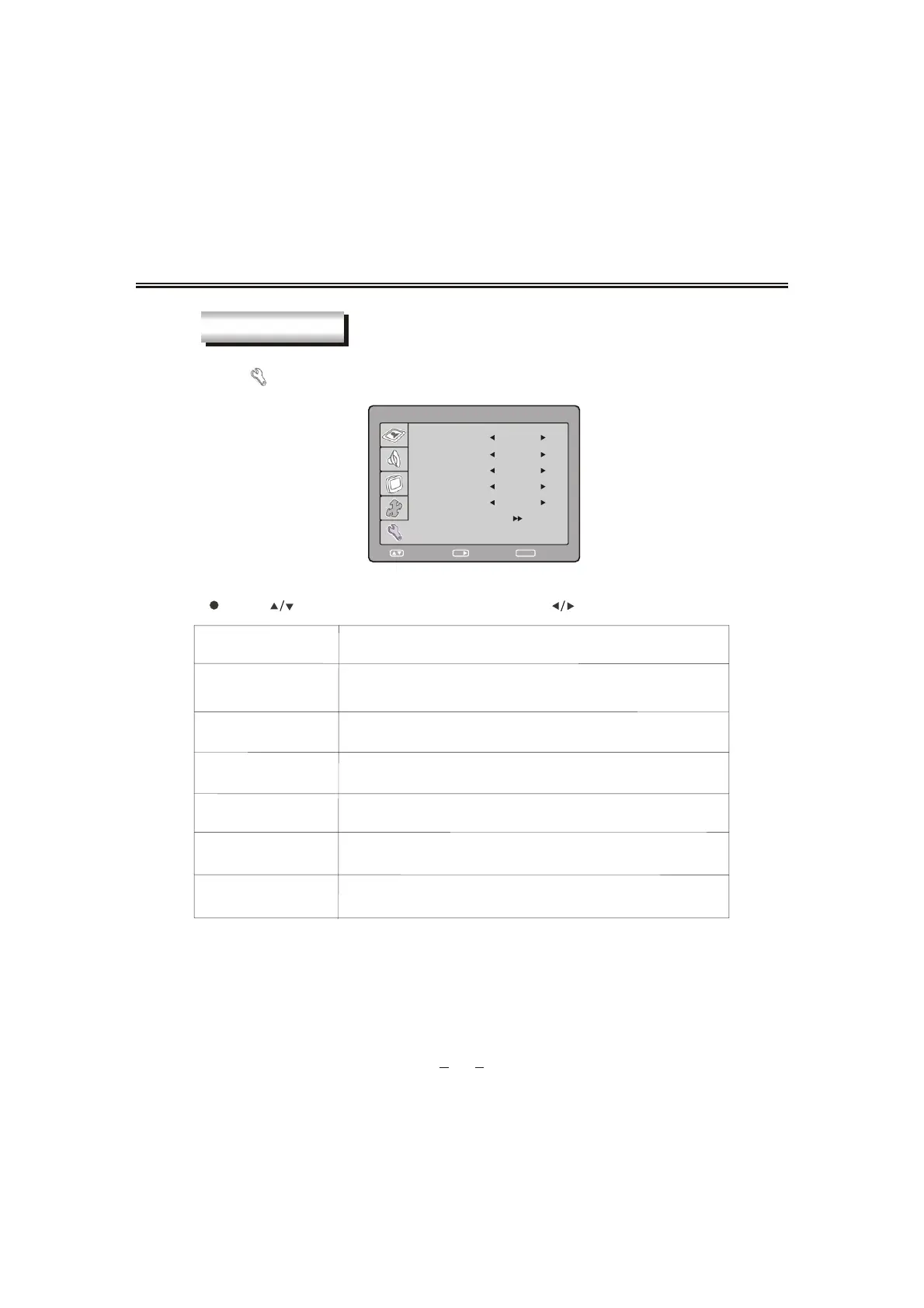 Press [ ] button to select different items and press [ ] button to adjust them.