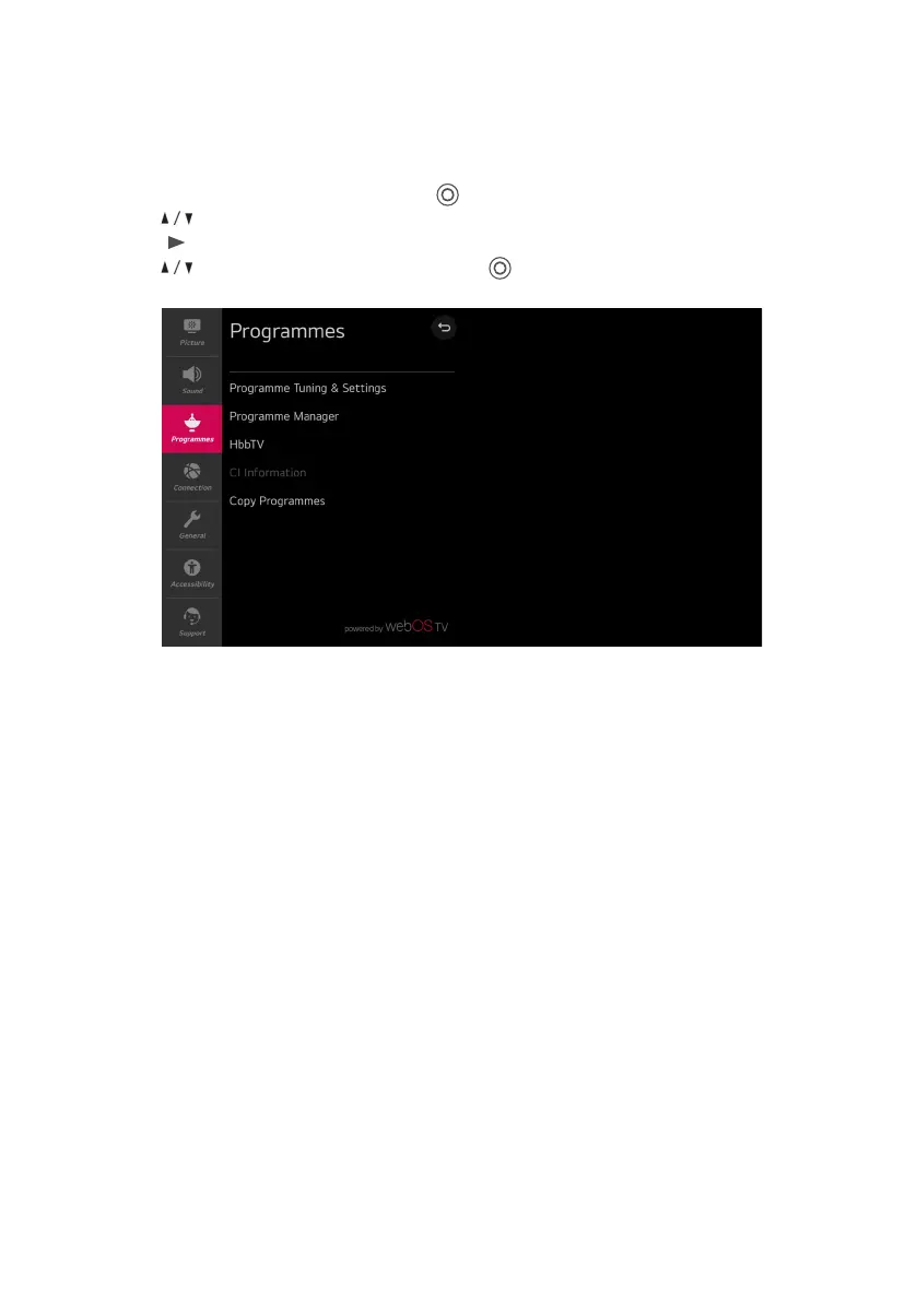 Press buttons to select Programmes in the submenu, it will highlight the option, then