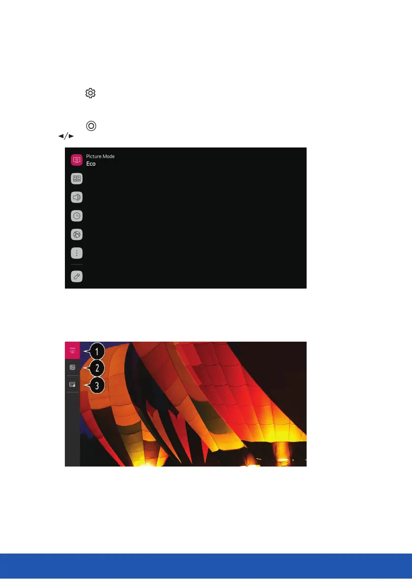 press the ( ) button on the remote control to go to the corresponding menu. Press