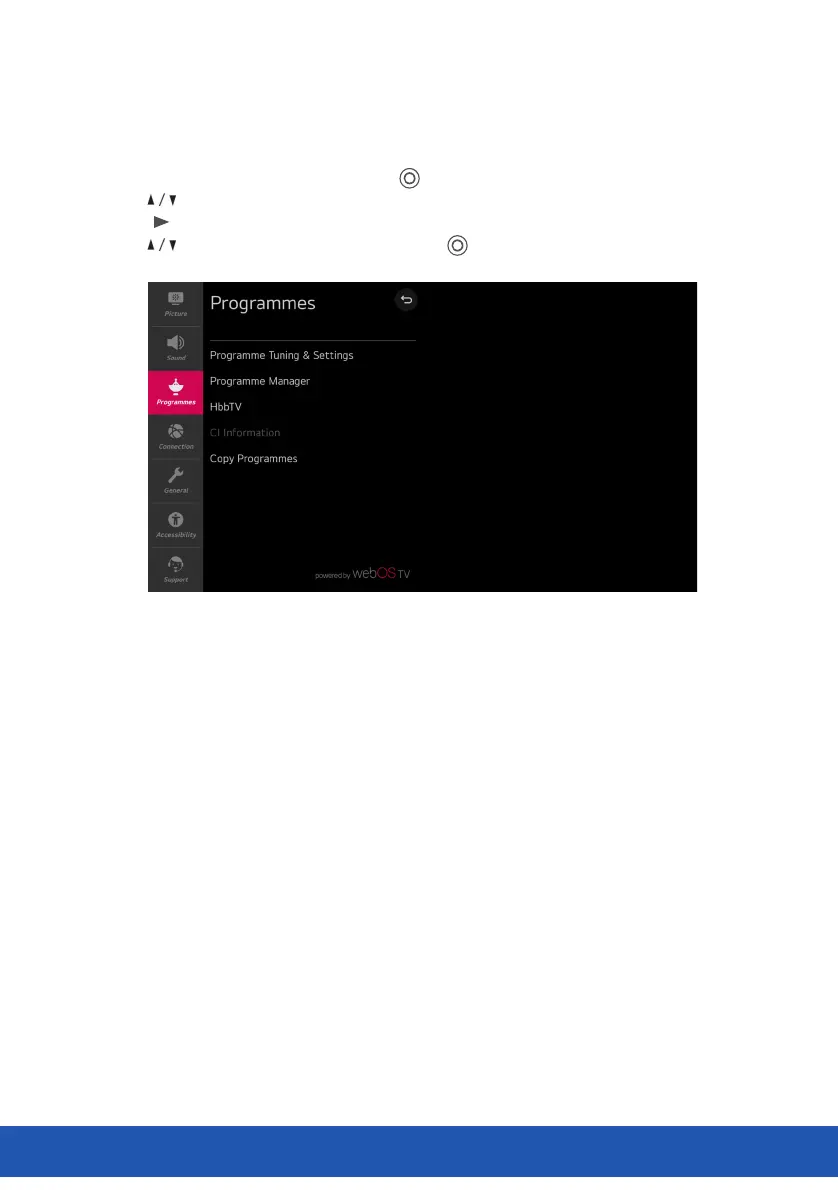 Press buttons to select Programmes in the submenu, it will highlight the option, then