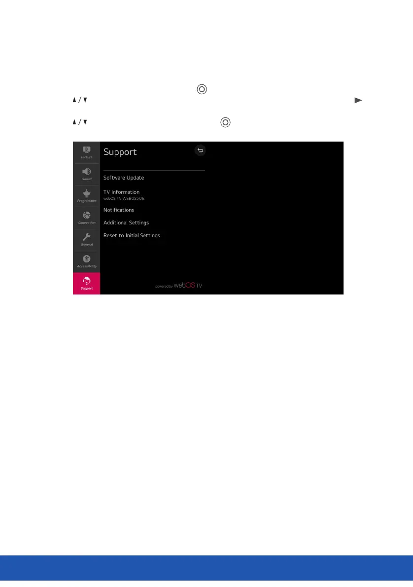 Press buttons to select Support in the submenu, it will highlight the option, then press