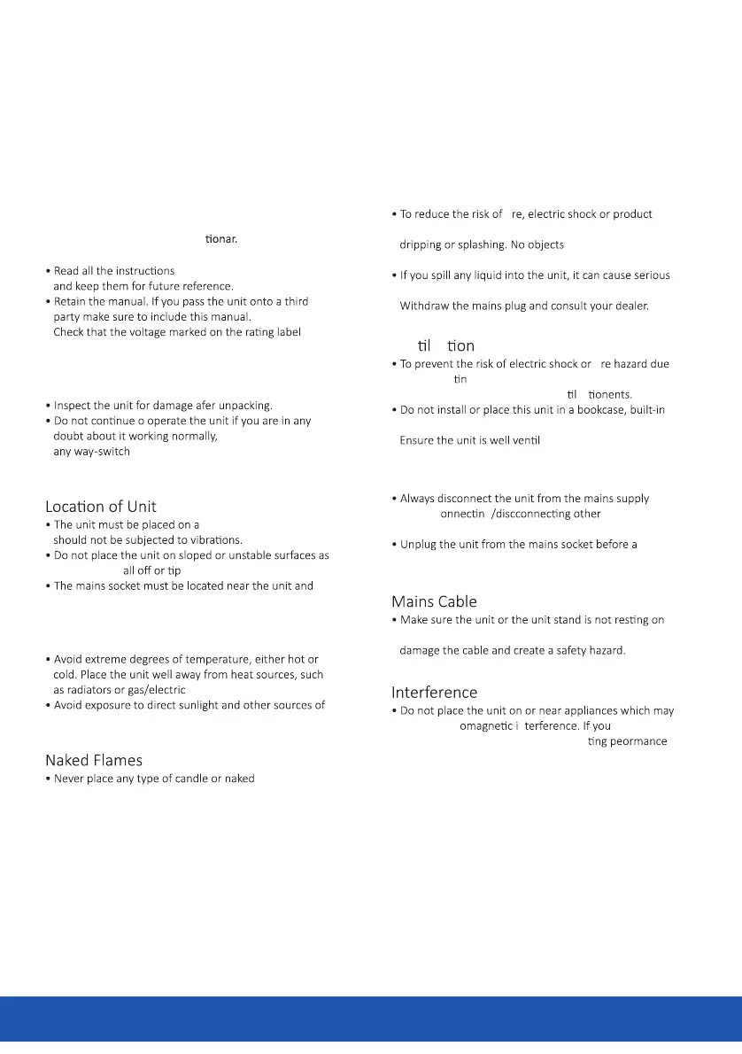 top of the mains cable, as the weight of the unit may