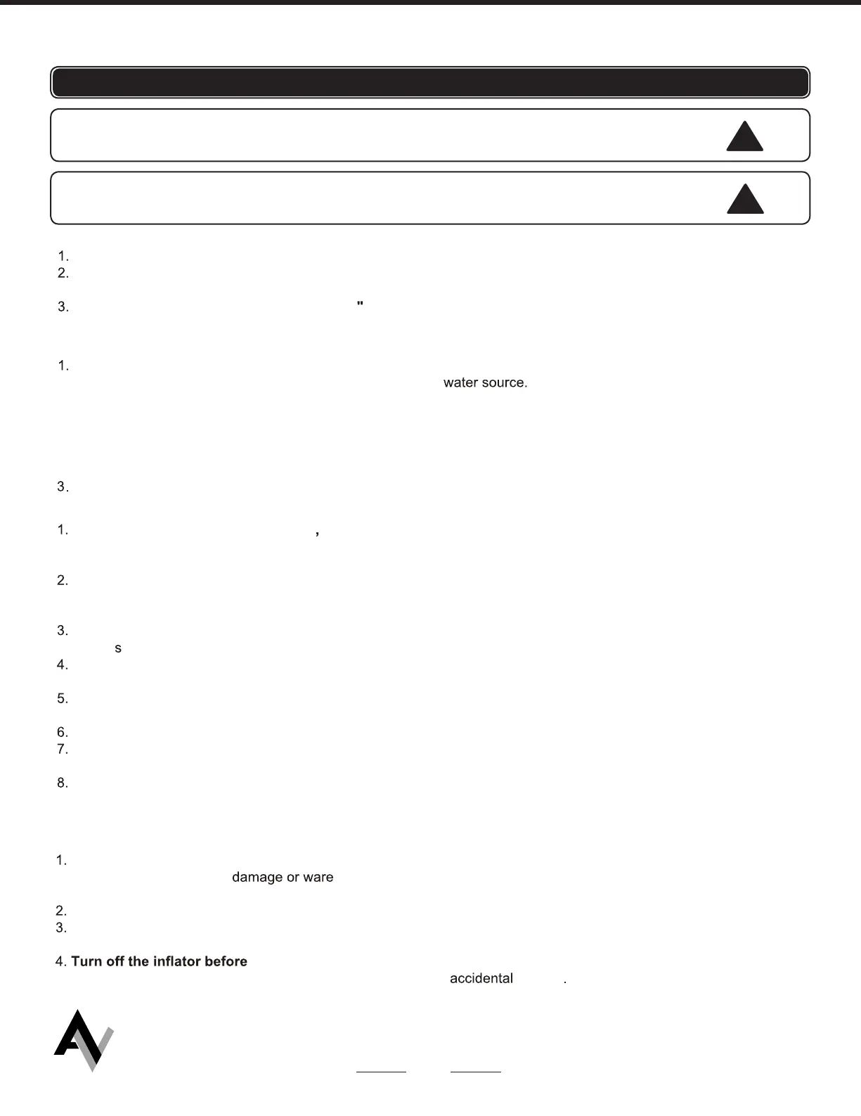 Operate inflator in an open area at least 18 away from any wall or object that could restrict