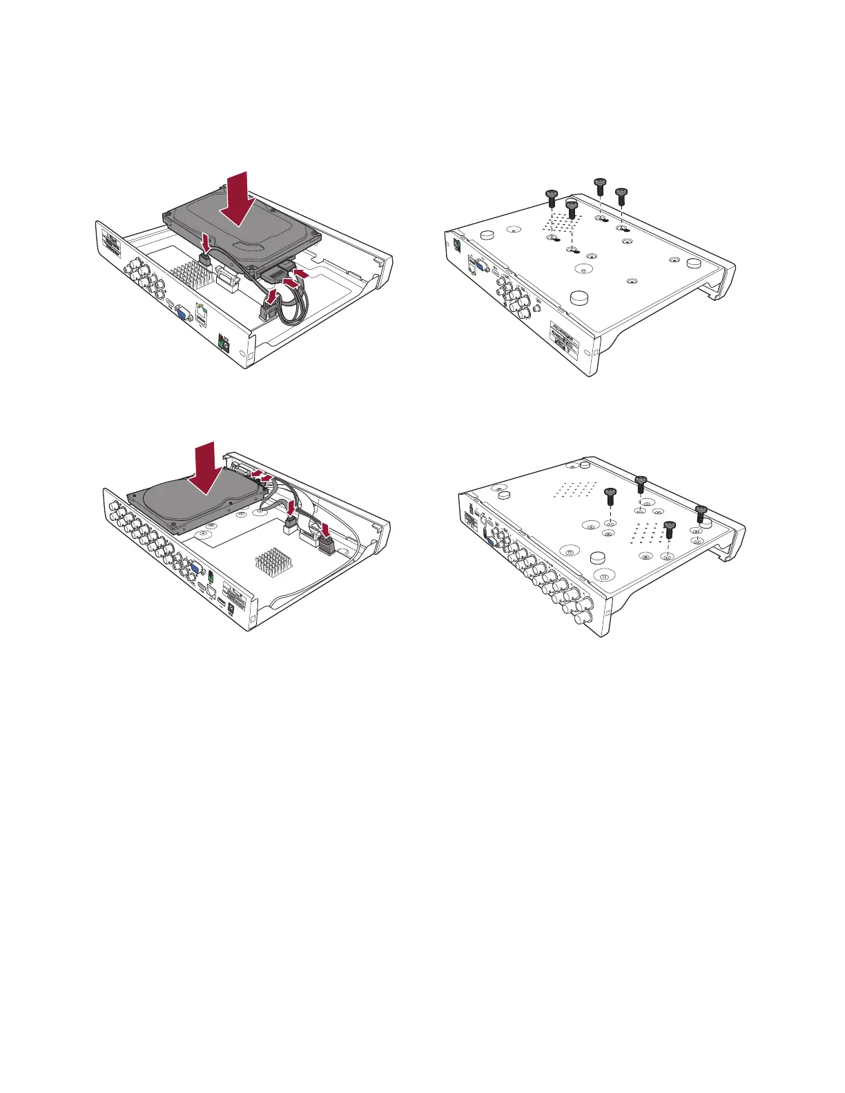 b) Carefully flip the DVR case and secure the HDD to the DVR with the screws.