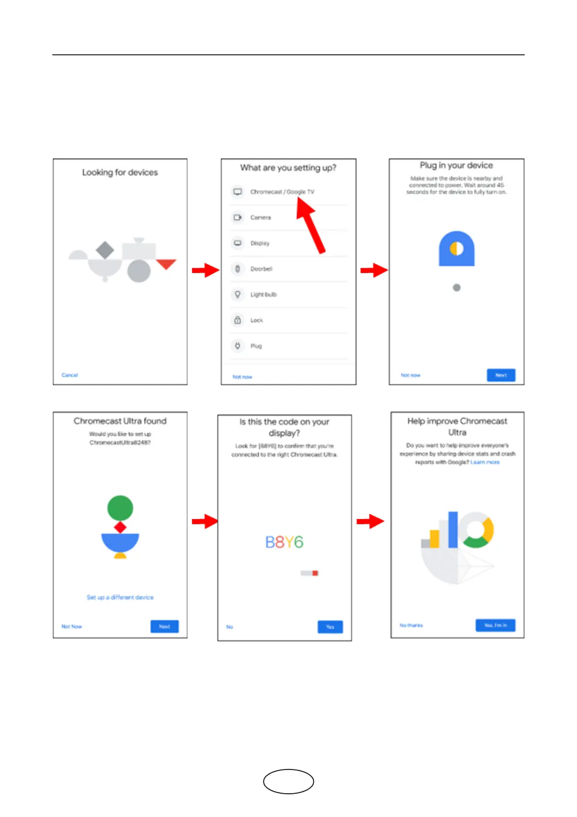 8. Your Chromecast will be found. Touch Next to connect. Conrm the code by touching Yes.