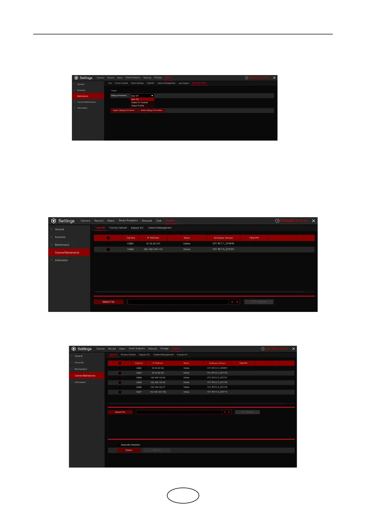 This menu allows you to upgrade the IP camera’s rmware and restore default settings of IP camera.
