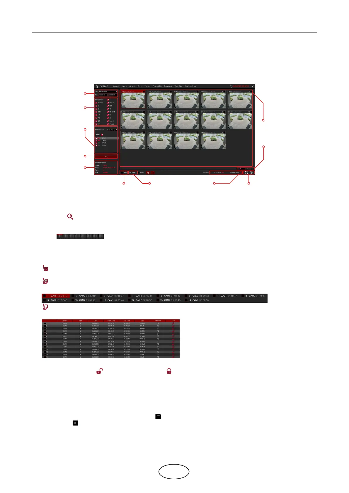 Event search lets you view a list of video recordings with the camera, start and end time, and recording