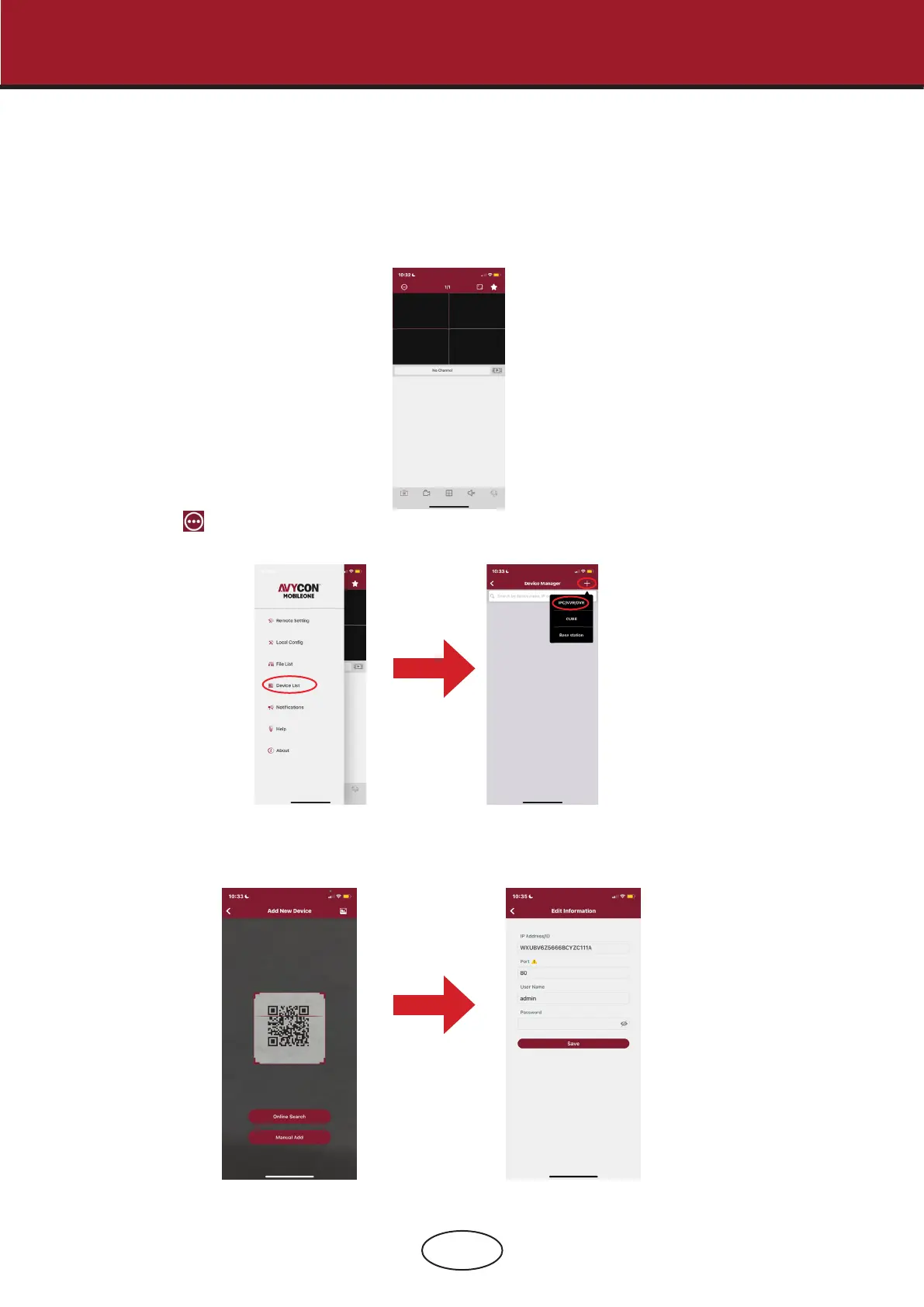page. Touch the + icon on the right top corner and then select “IPC/NVR/DVR”.
