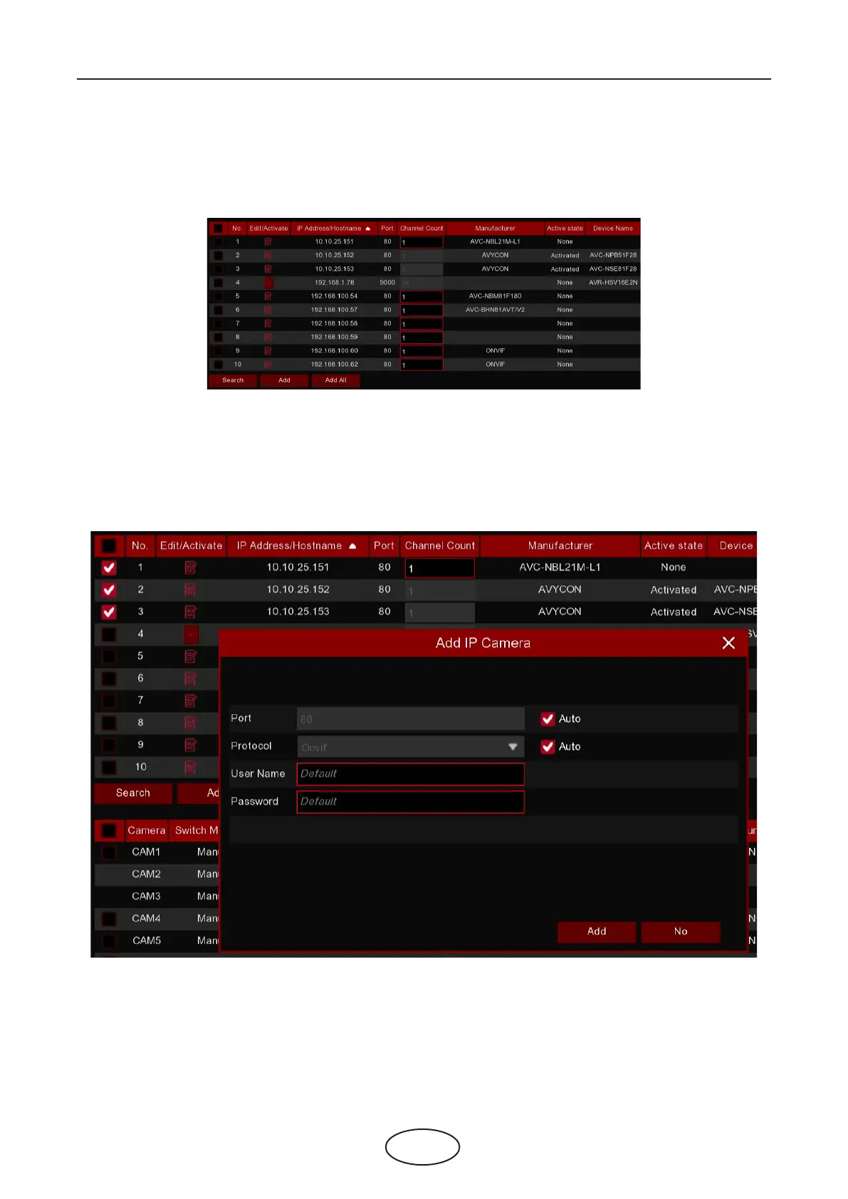 and password of the cameras. Please make sure all the cameras you want to add use the same user name