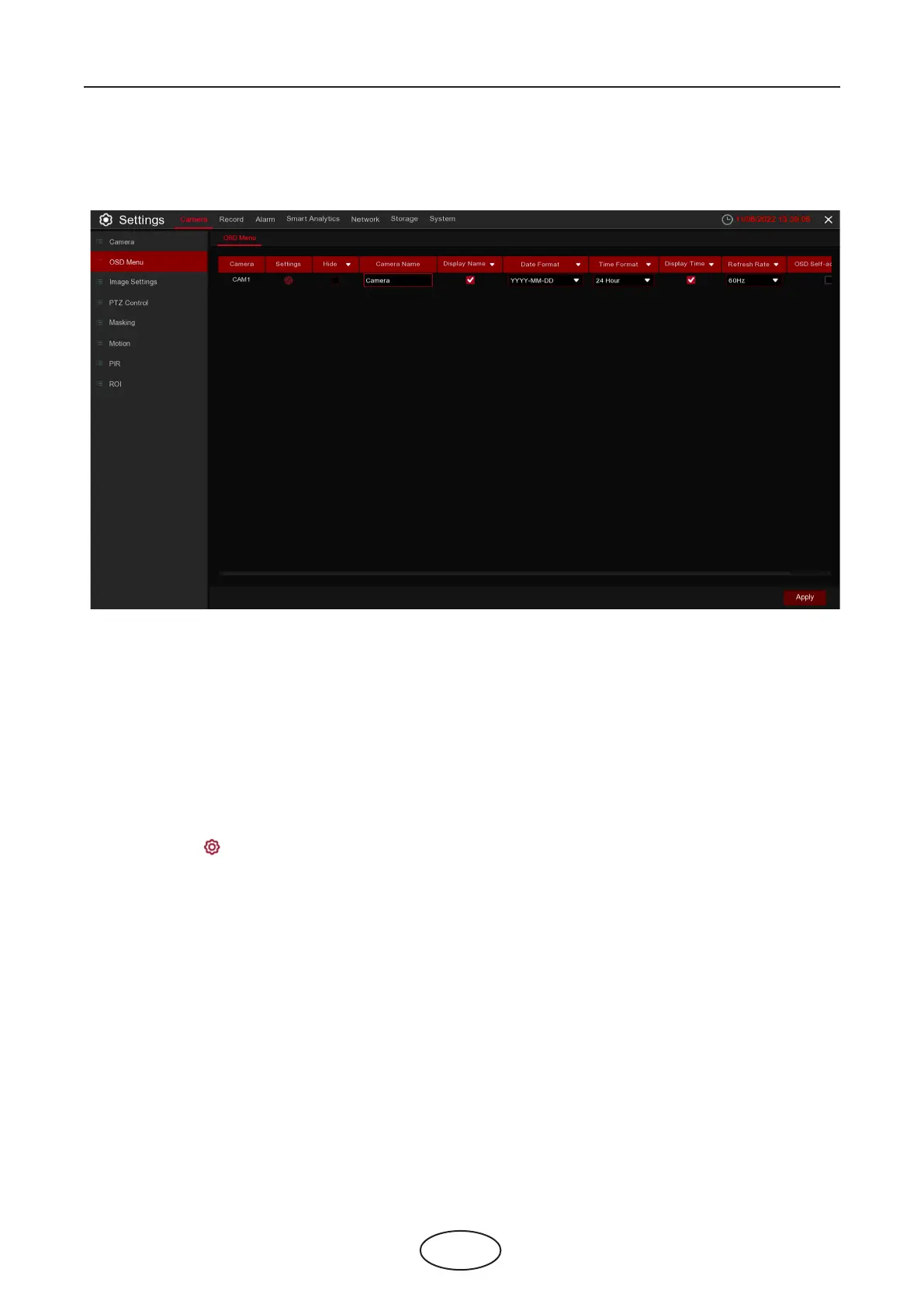To congure camera parameters, including camera name, color, date & time format, refresh rate, etc.