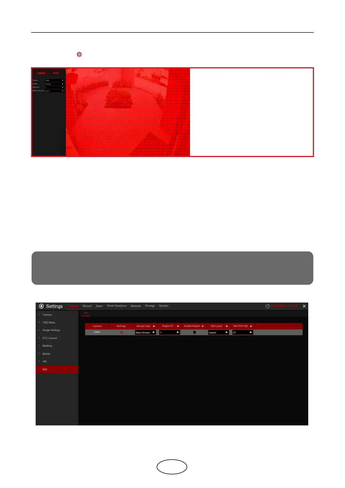ROI(sensitive area) is a focus area selected from the video area. This area can be set to a dierent frame