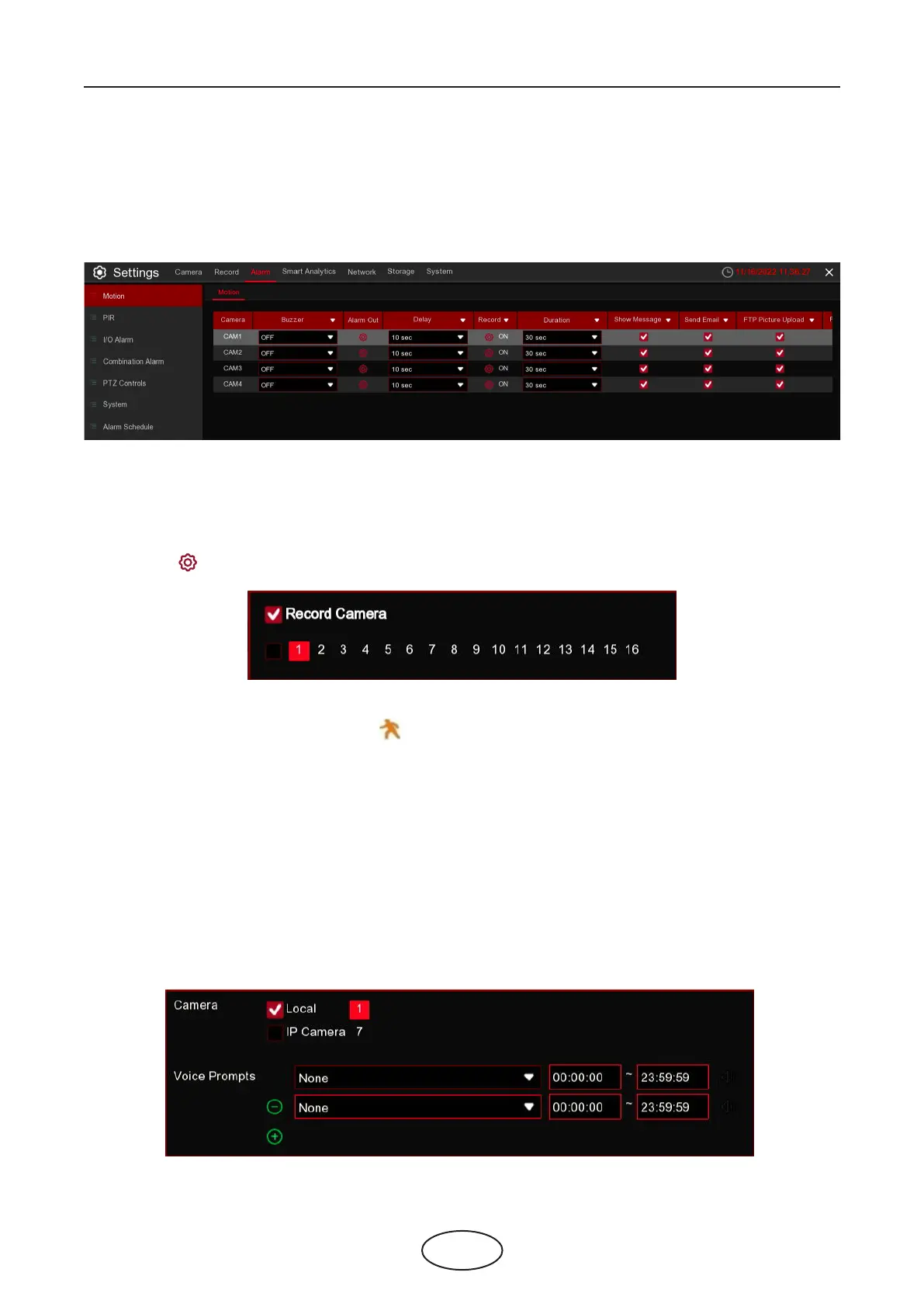 Voice Prompts: If your NVR or IP camera connects with a speaker, you can select an customized alert voice