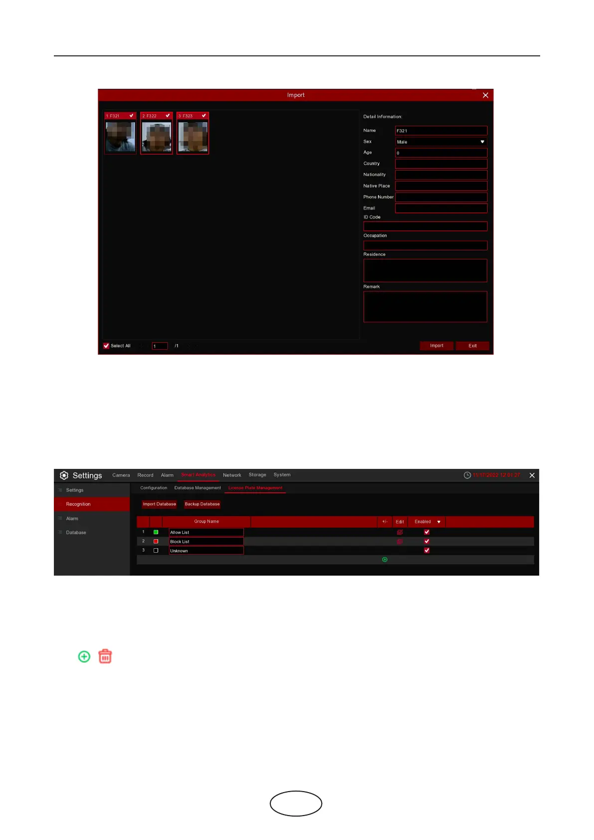 Click / : To add a new license plate group or delete an existing license plate group.(The default rst