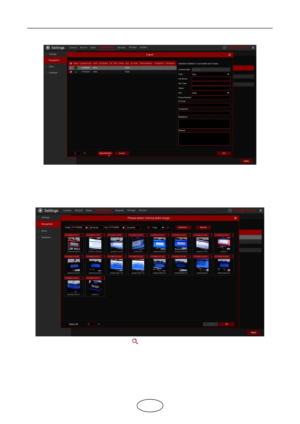 Click Import/Modify button to add a batch, and you can also modify one license plate information. When