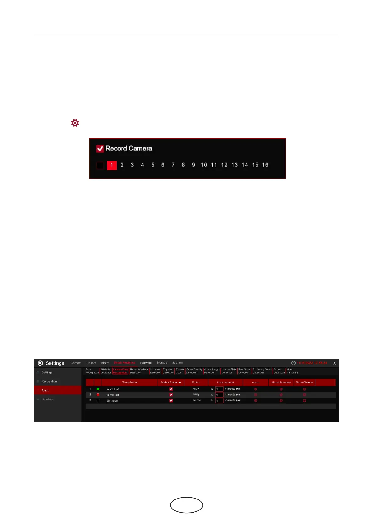 Record: Click icon,select the channel to record when triggering pedestrian and vehicle alarms.