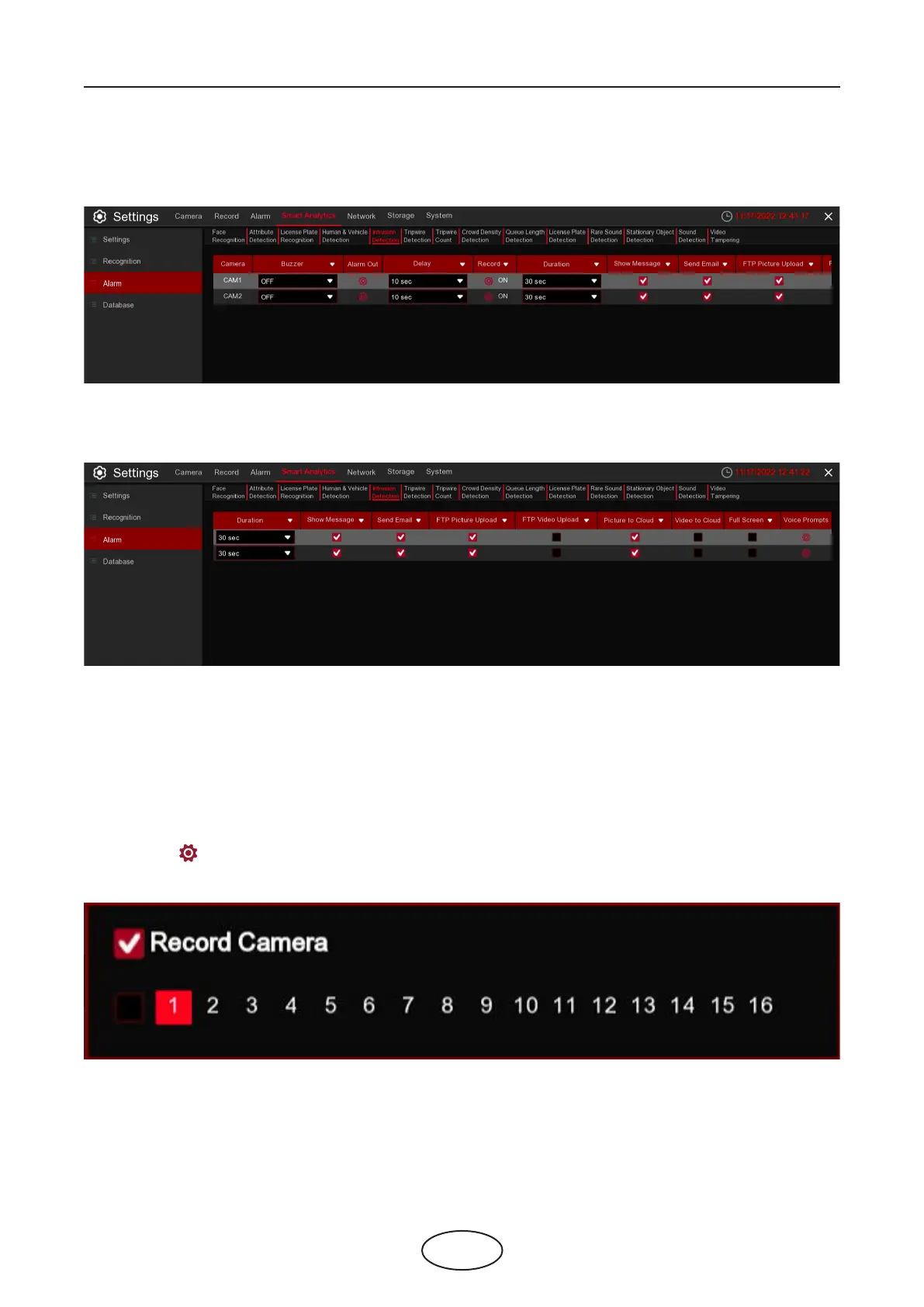 Record: Click icon to set channels that pedestrian and vehicle alarms.