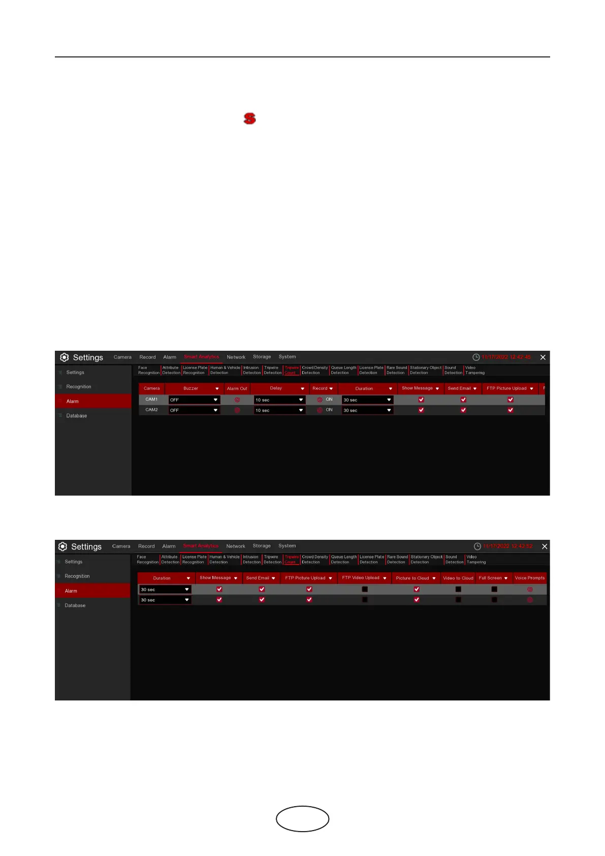 Voice Prompts: Voice prompt, when the alarm is triggered, the audio le is imported by the voice prompt