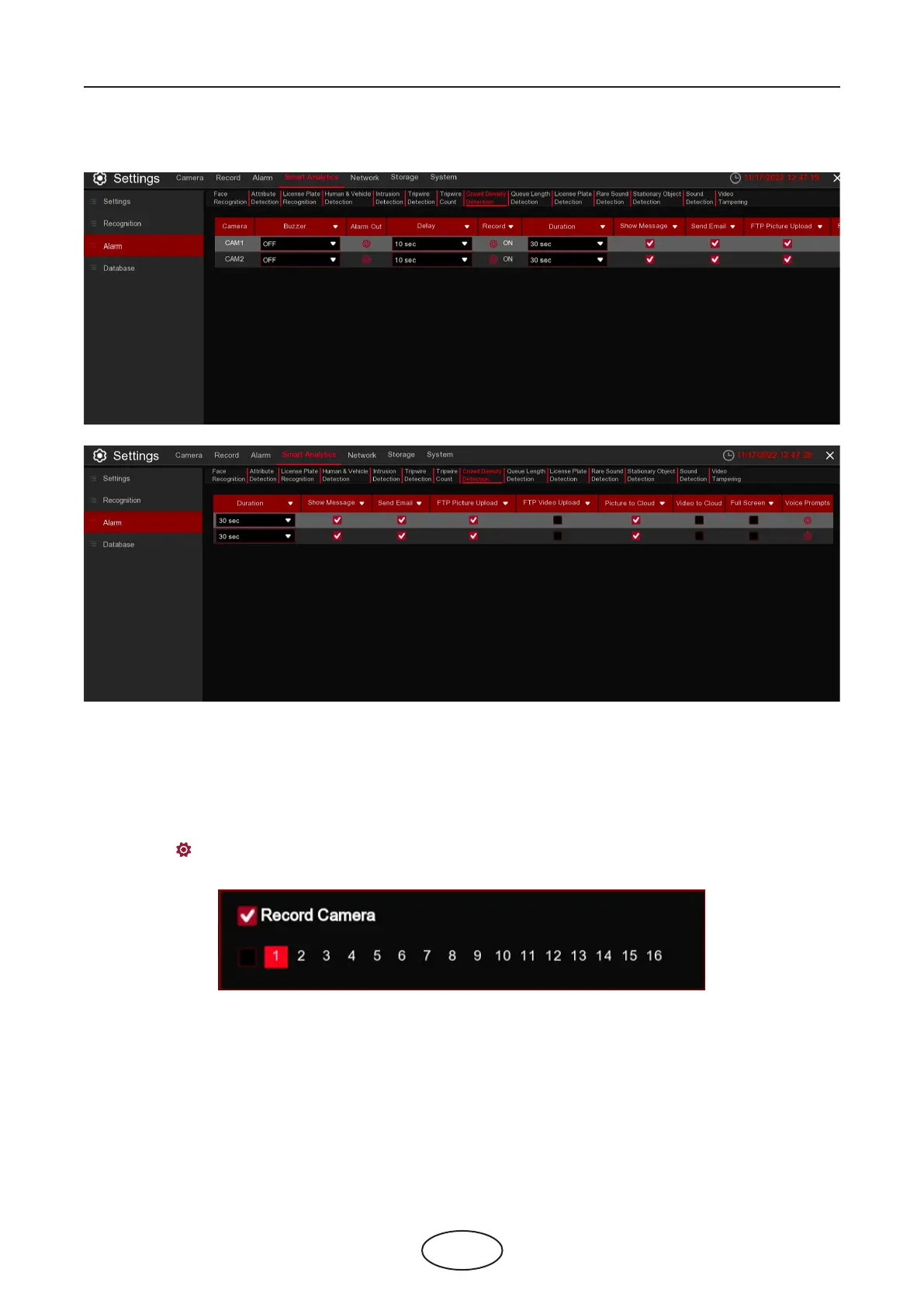 Alarm out: Check the external alarm device when Crowd Density alarm is triggered.