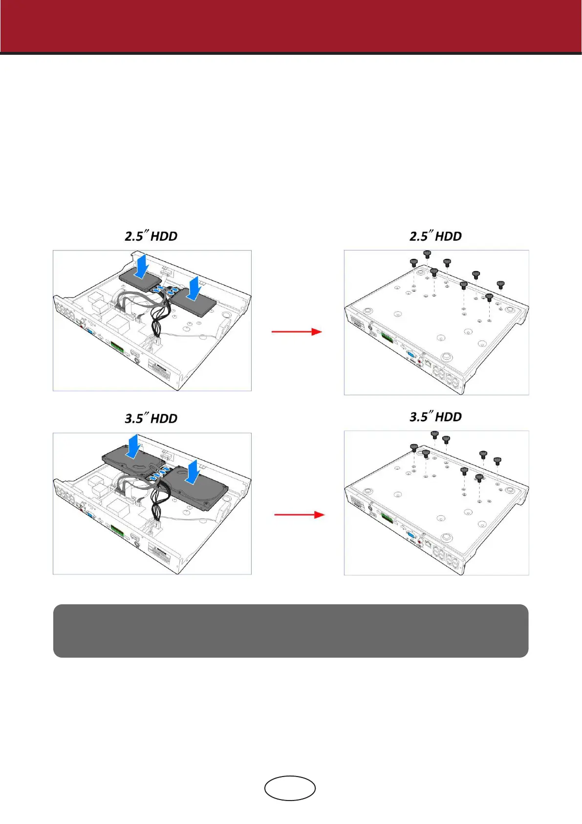disk drives to the NVR with the eight (8) screws.