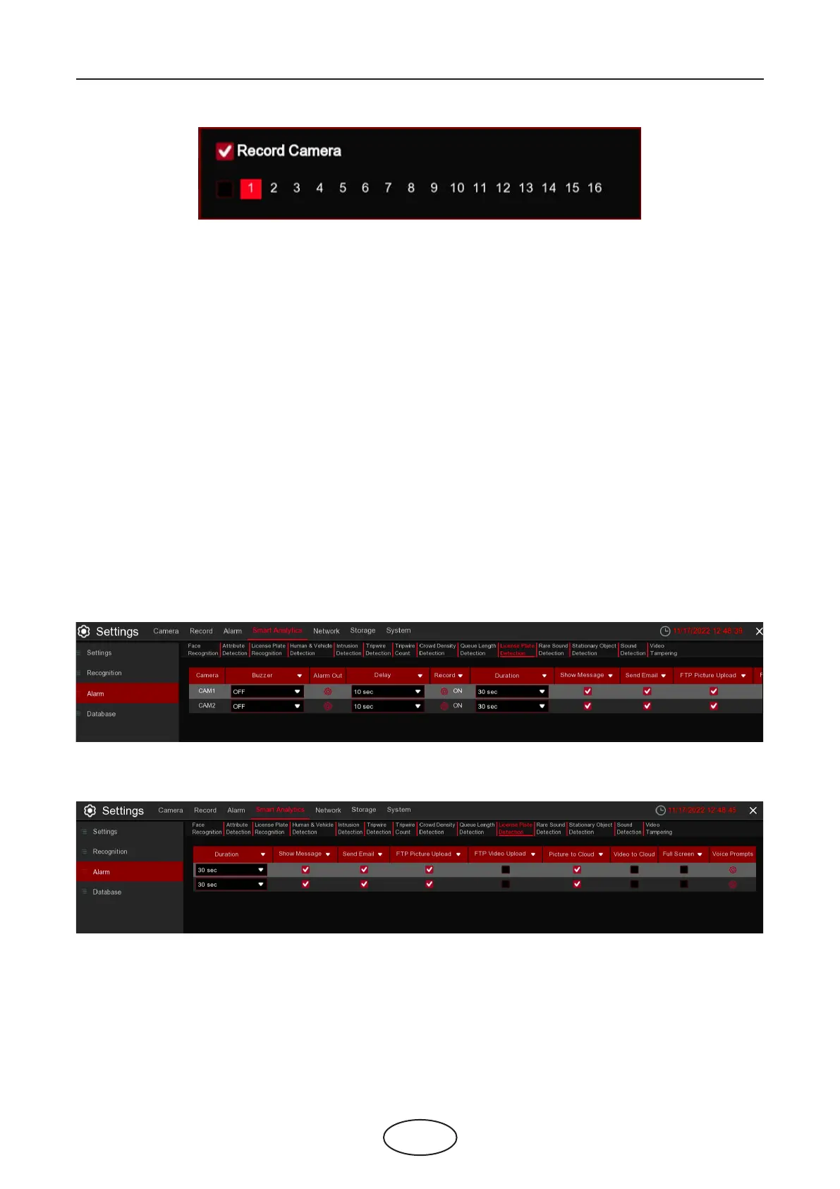 Voice Prompts: Voice prompt, when the alarm is triggered, the audio le is imported by the voice prompt