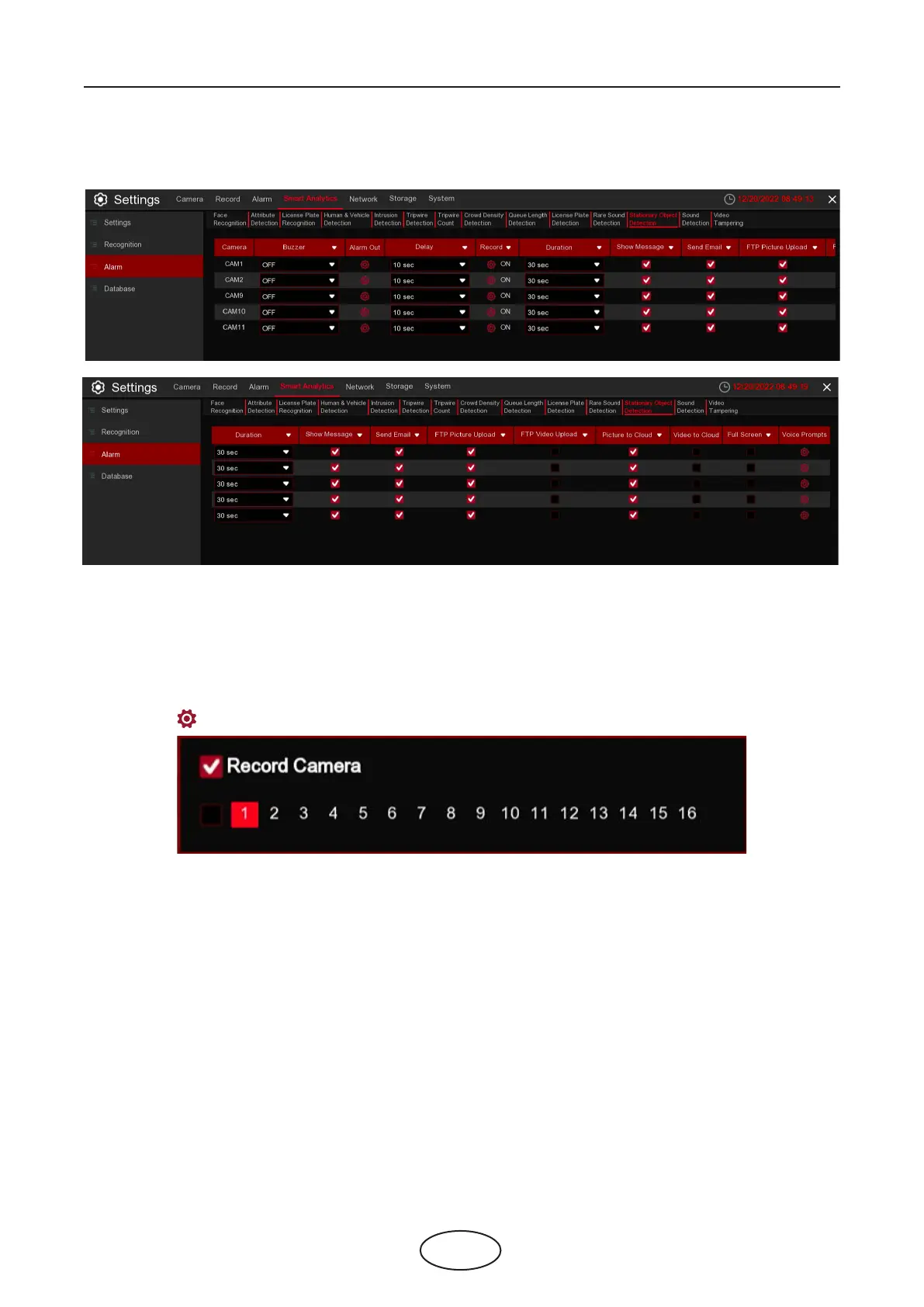 Record: Click icon to set channels that pedestrian and vehicle alarms.