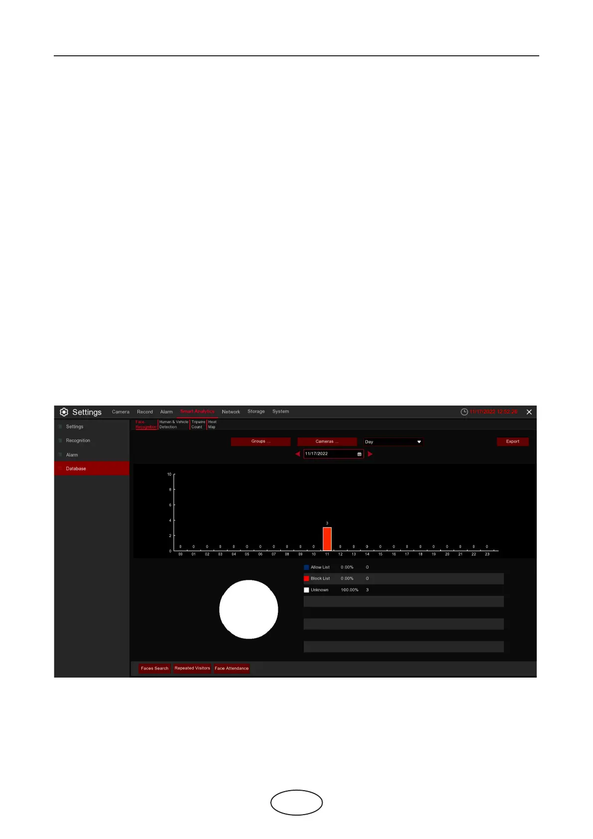 You can check the face recognition statistics in a certain period.