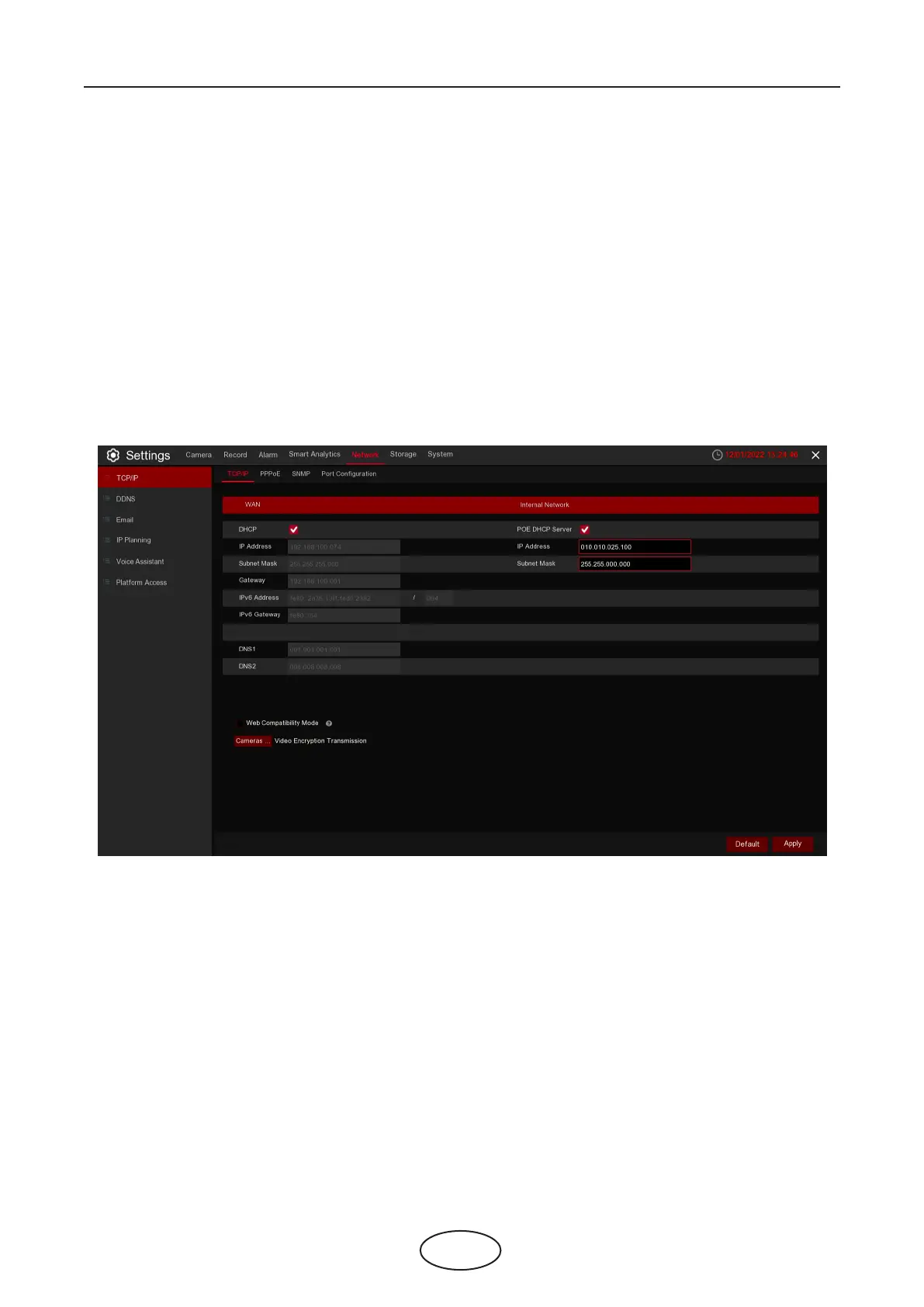 IP Address: The IP address identies the NVR in the network. It consists of four groups of numbers between