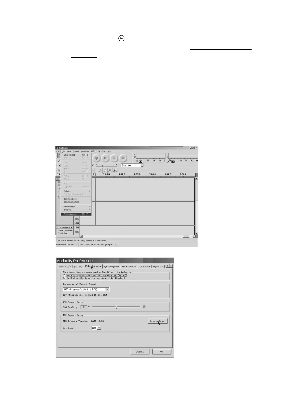 PrepareforMP3Export‐‐‐(Additionalsoftware“lame_enc.d ll”needsto