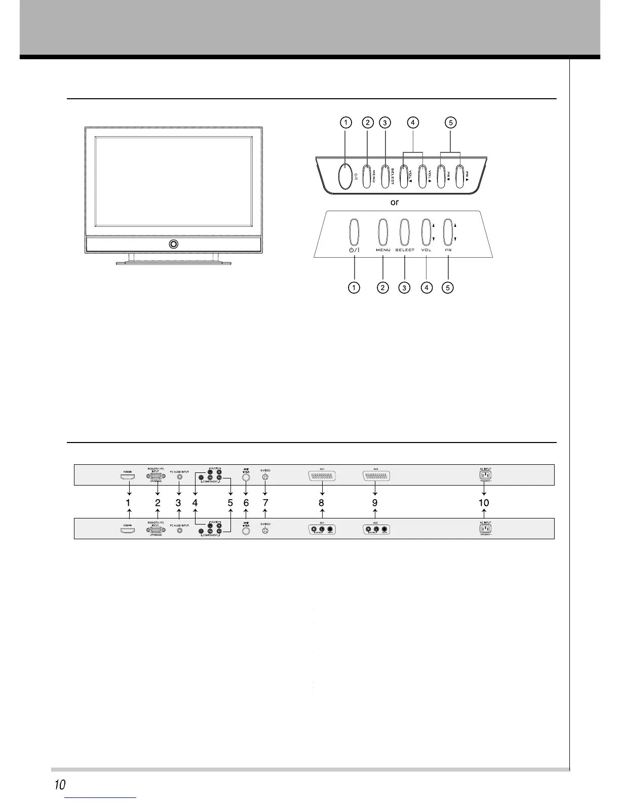 8. AV1 : Composite input of A/V Source.
