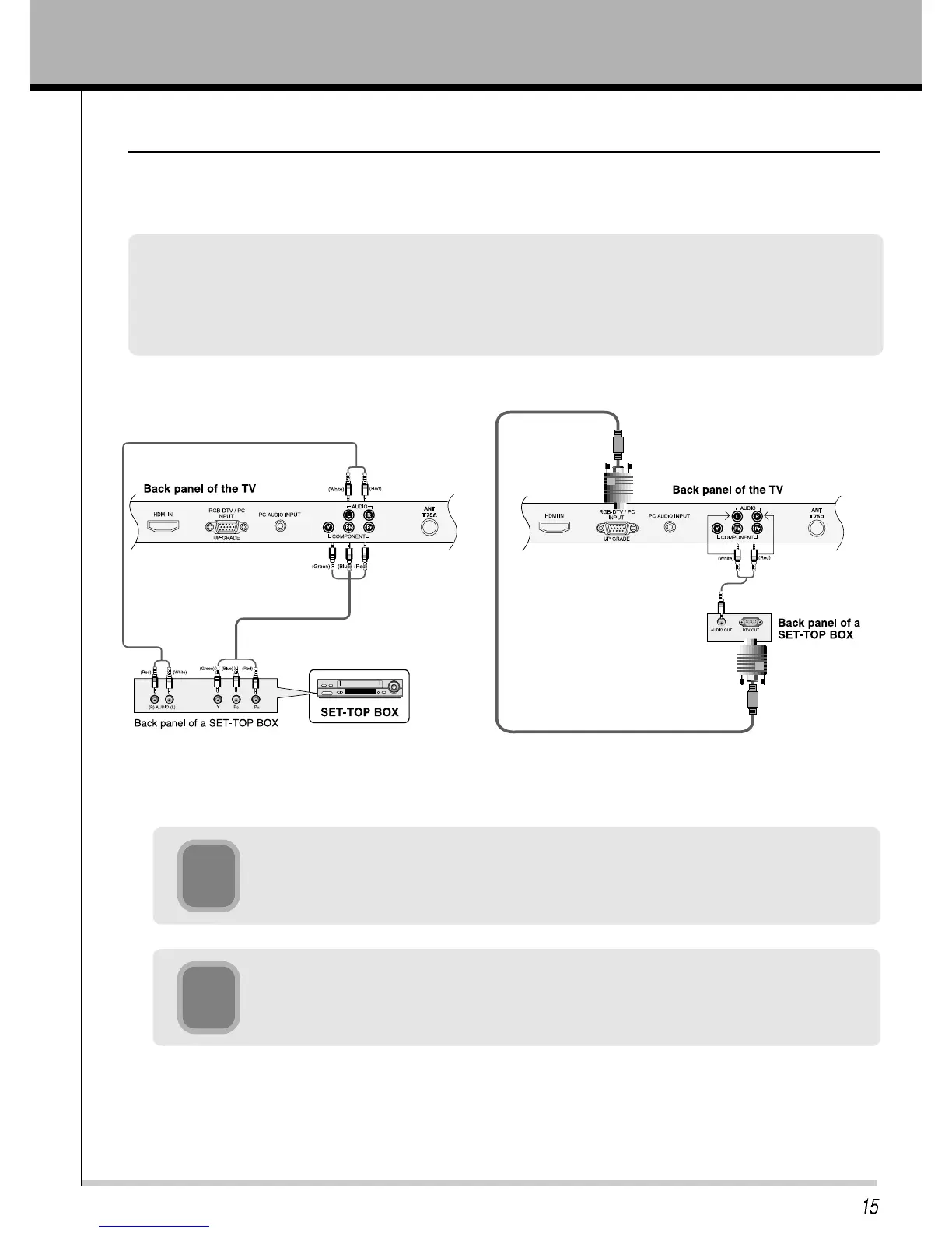 video connections, depending on your Set Top Box connectors. Then, make the corresponding Audio