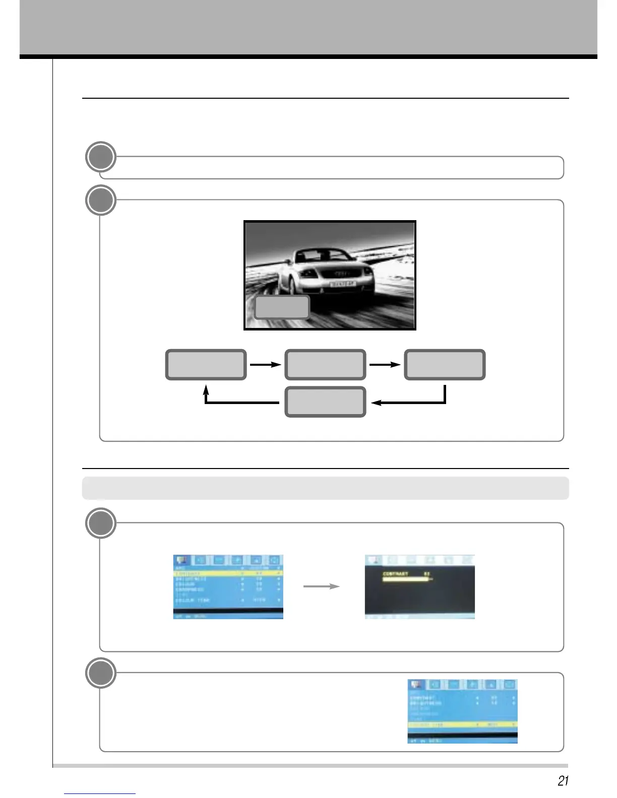 Press the PR+/- button to select Contrast and then press the VOL + button.