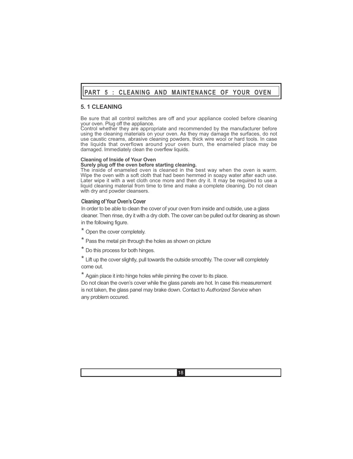 PART 5 : CLEANING AND MAINTENANCE OF YOUR OVEN