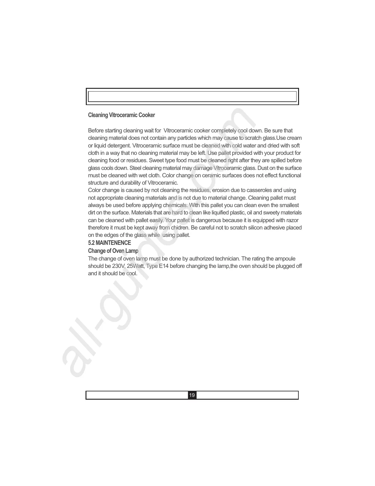 glass cools down. Steel cleaning material may damage Vitroceramic glass. Dust on the surface