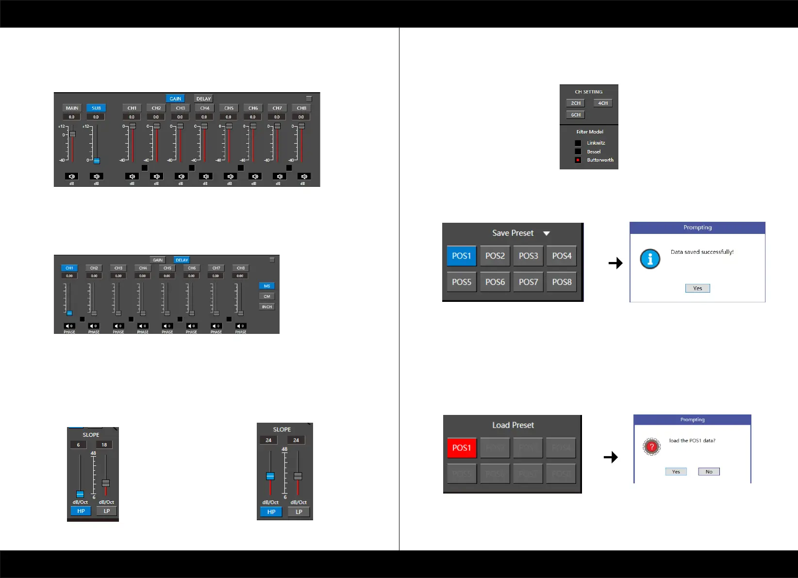 To choose different Filter type Linkwitz Bessel Butterworth.