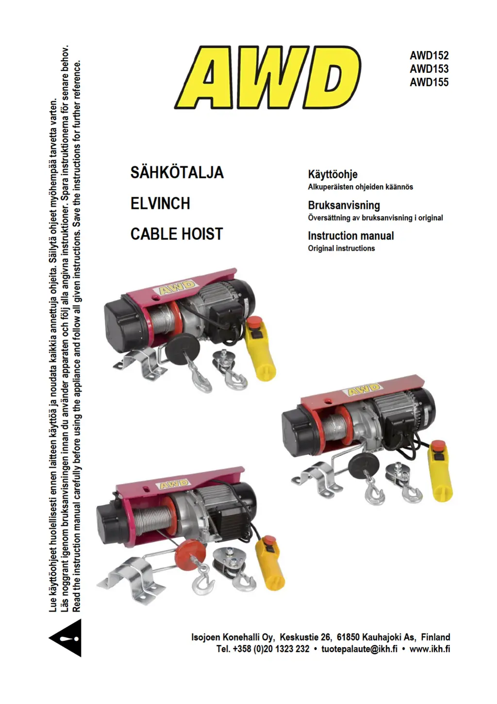 If your AWD Chain Hoist won't operate, several factors could be at play. It could be due to a loss of power, in which case you should have it checked by a professional electrician. Also, ensure the voltage and frequency of the power supply match what's indicated on the motor rating label; if there's a discrepancy, have it repaired by a professional electrician. Overloading the hoist can also prevent operation, so reduce the load to stay within the rated capacity. Other potential causes include improper, loose, or broken wiring (have it checked by a professional electrician), blown fuses (check and repair if necessary by a professional electrician), or a burned motor (have it replaced by an authorized service center).