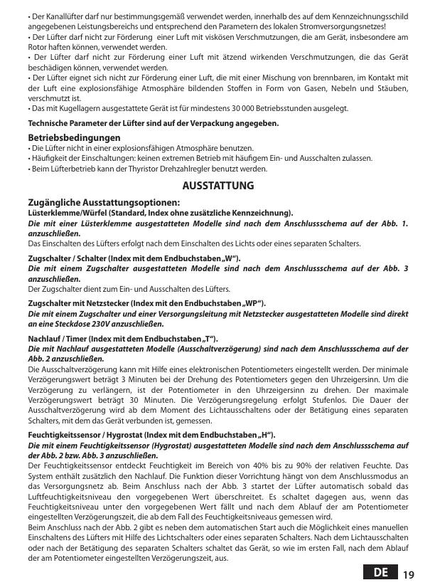 Einschaltens des Lüfters mit Hilfe des Lichtschalters oder eines separaten Schalters. Nach dem Lichtausschalten