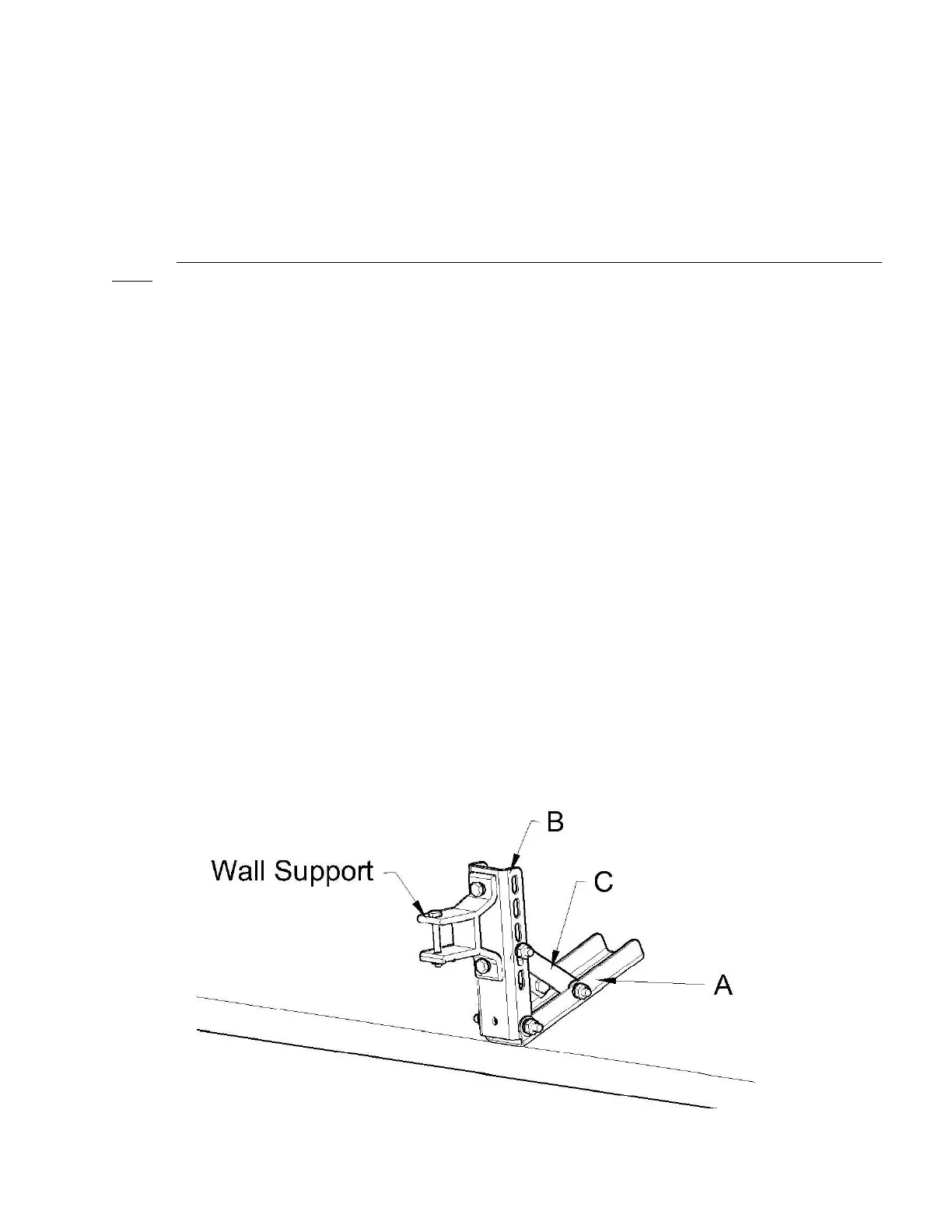 Install wall brackets securely on the face of brackets (B) ith the nuts, washer and bolts provided.