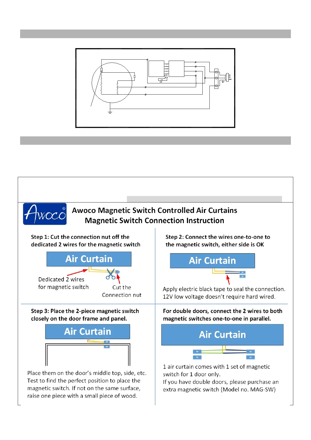 This air curtain comes with a magnetic door switch, contact seller or Awoco if you are missing a