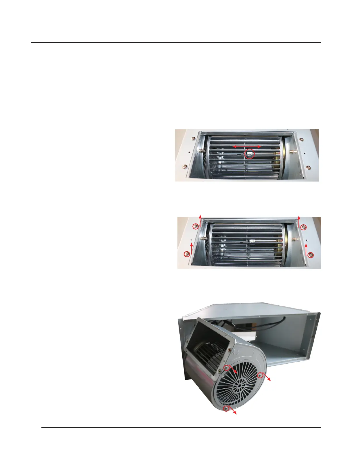• Remove the duct and expose the blower fan wheel.
