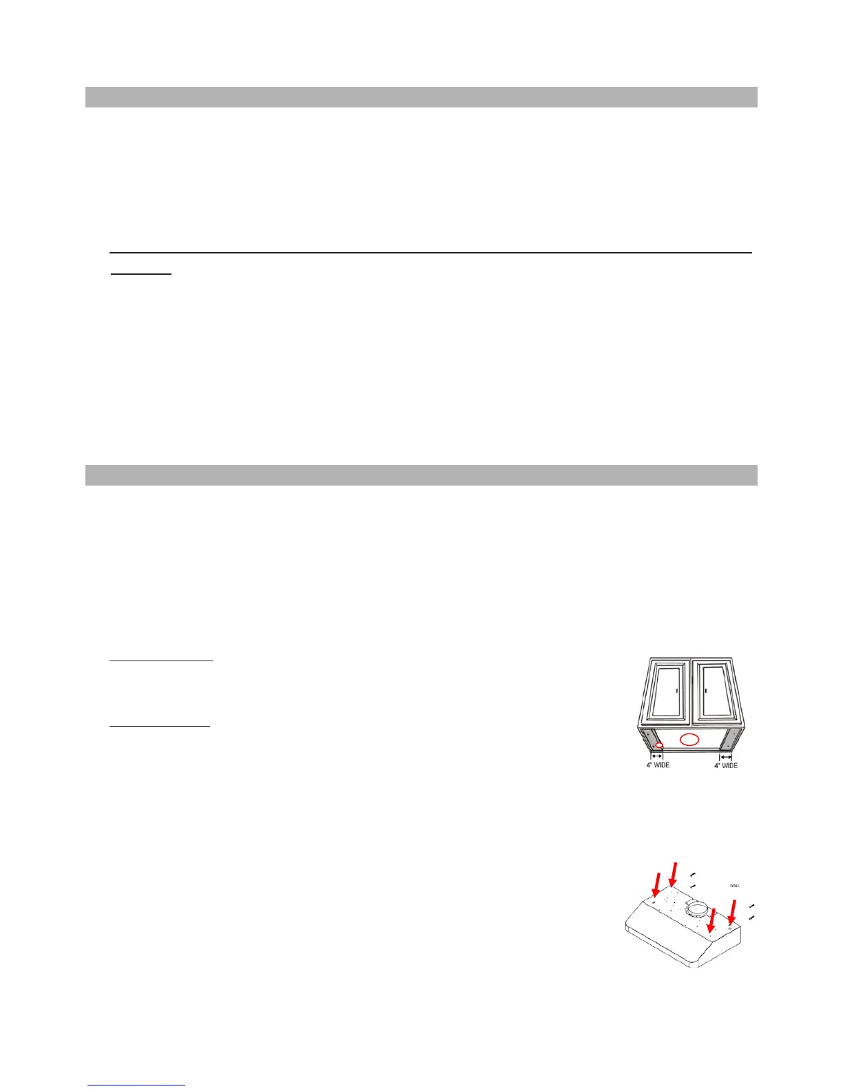 4) For installing under the cabinet with recessed bottom, attach 4-inch wide wood filler strips (not provided)