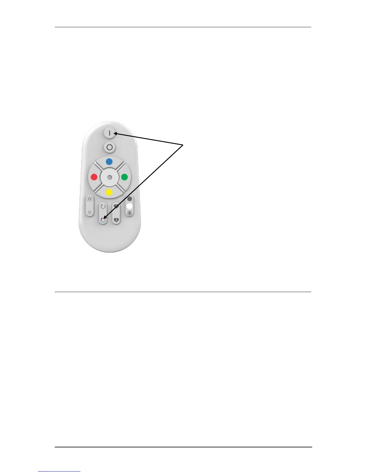 Press the ON and COLOR CYCLE buttons on the remote control simultaneously for 4 seconds. The LED